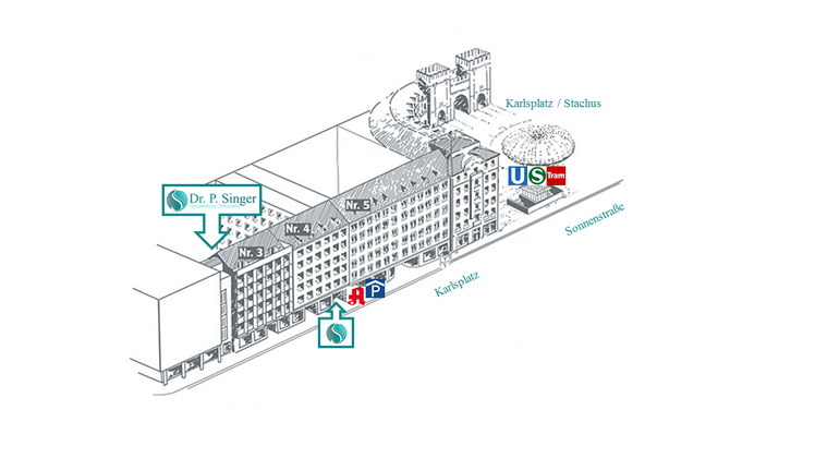 Eingang Orthopädisches Privatpraxiszentrum (Drs. Krebs und Singer)